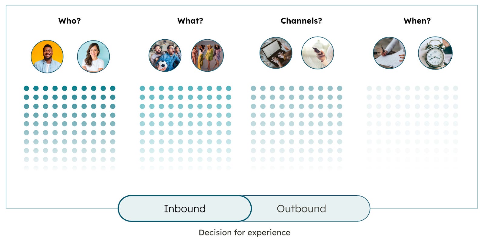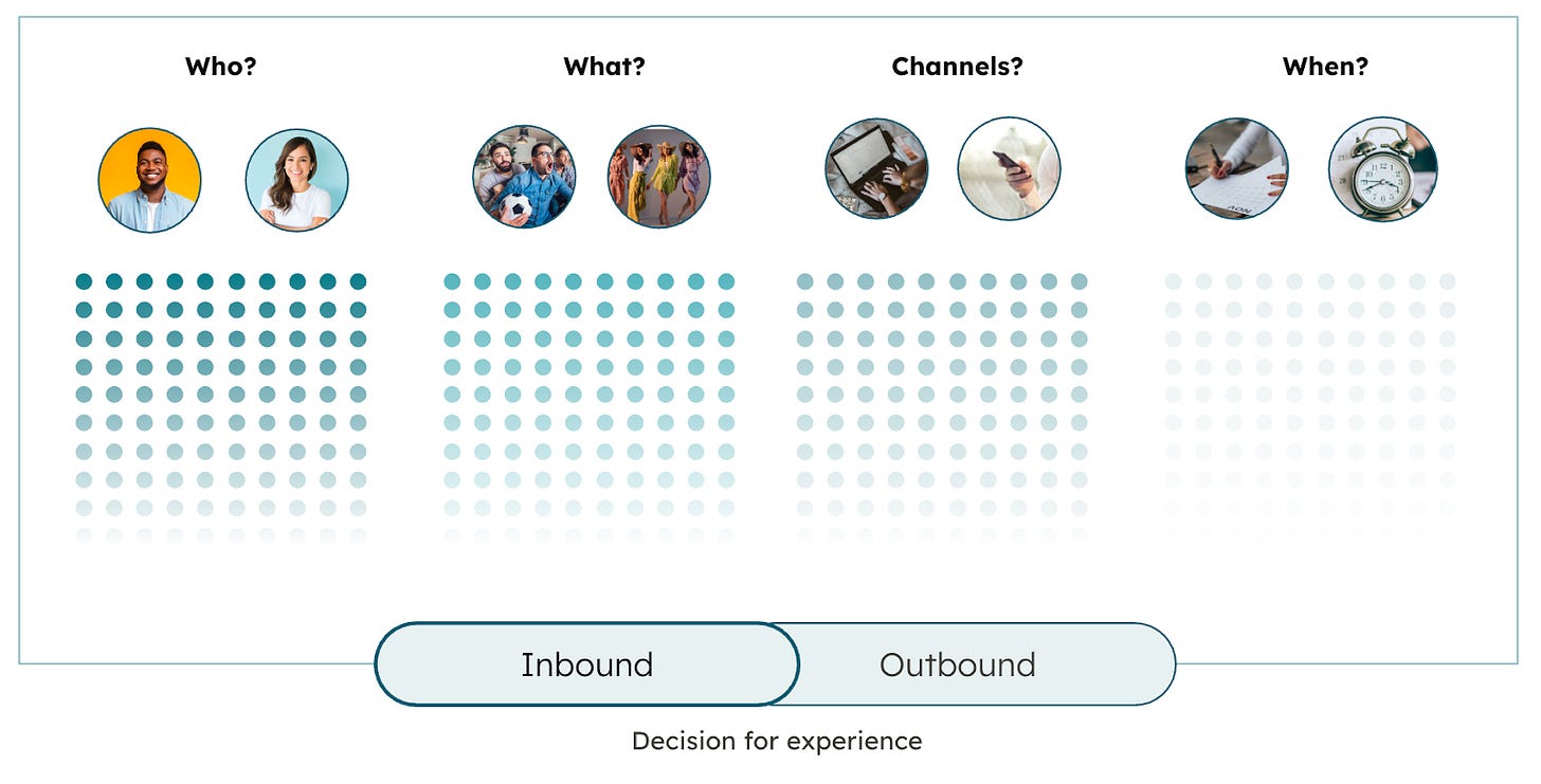 Do we need an immediate response—something to influence the next page view or interaction (inbound)? Or are we planning an outbound message, where there’s more time to think, analyze, and decide?